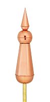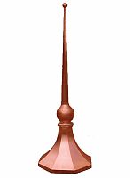 A finial or a spire puts the finishing touch on any roofline. Purely decorative, copper finials help to draw the eye from any open, expansive roof. These spires are made from 16 oz. copper and soldered together.